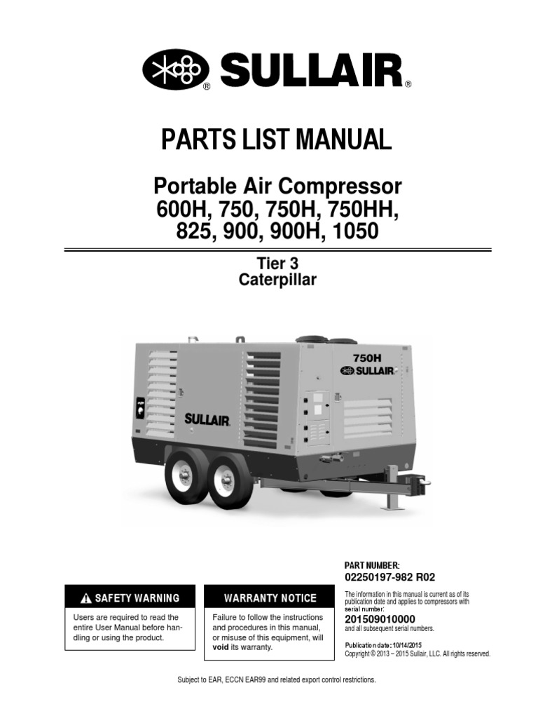 Parts List Manual Portable Air Pressor 600h 750 750h 750hh 825 900 900h Tier 3 Caterpillar Warranty Notice Pdf Free Download